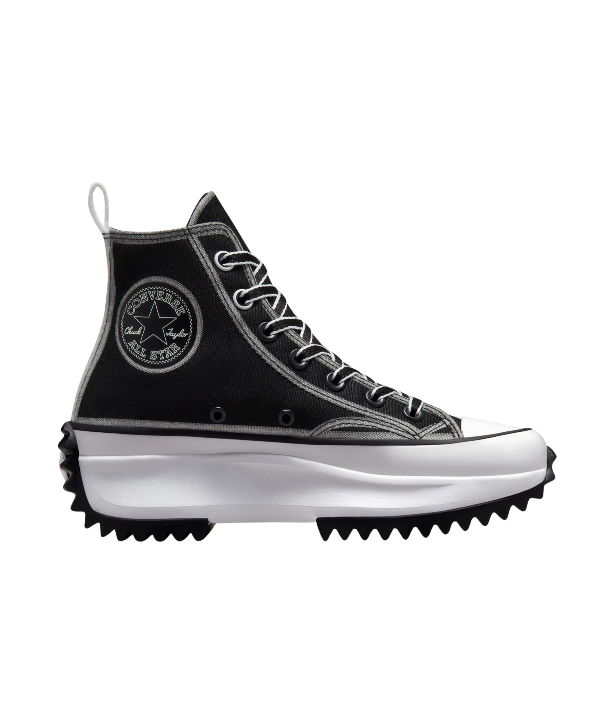 Unleash your style with the Allstar Hi Run Star Hike in Black. These iconic high-tops feature a bold platform sole for added height and comfort. The sleek black canvas upper ensures versatility, making them perfect for any outfit. Elevate your look and embrace your adventurous spirit!