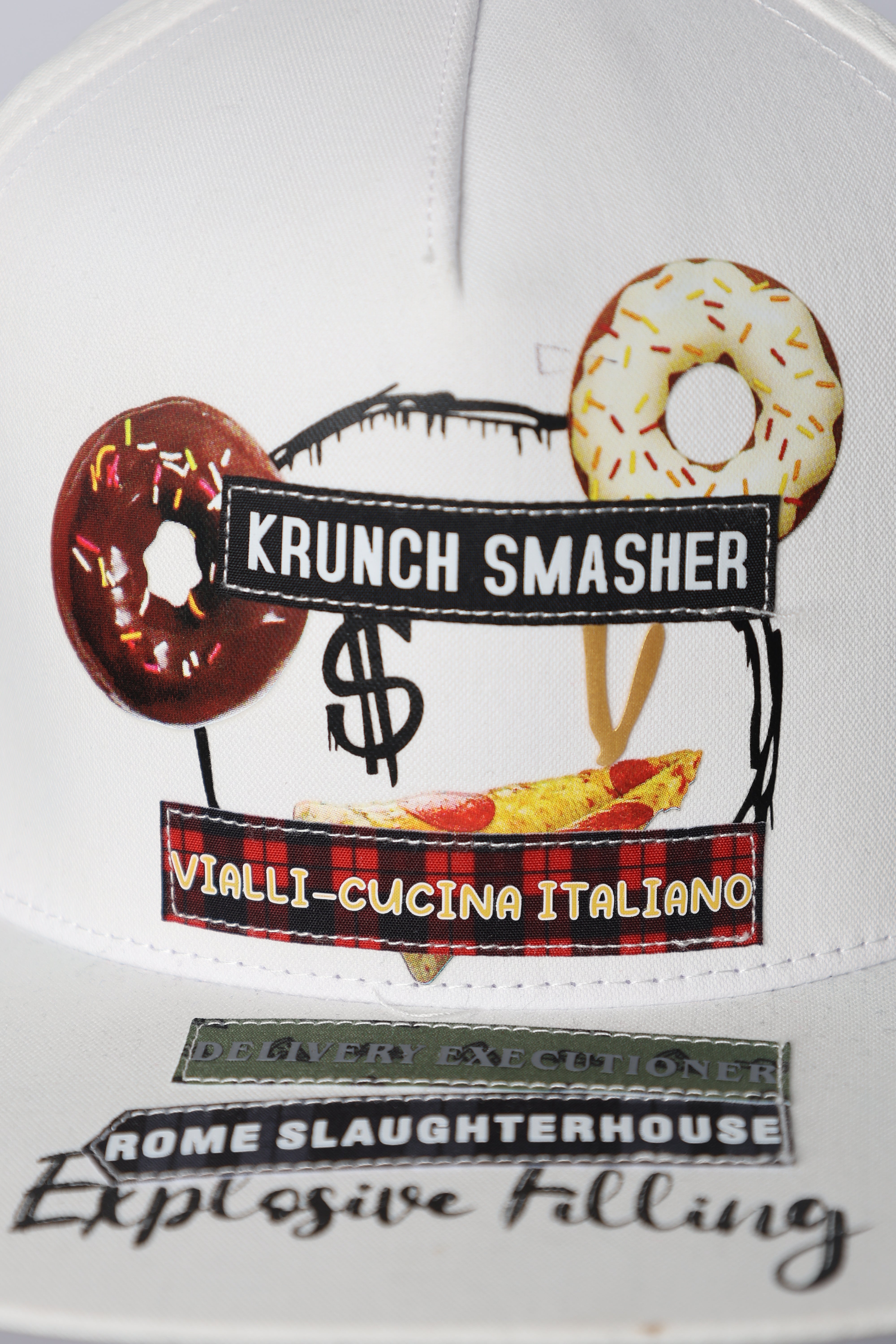 Elevate your style with the Vialli Cap  Estetica White! This sophisticated cap features a unique Estetica print, breathable fabric, and an adjustable fit for effortless chic.